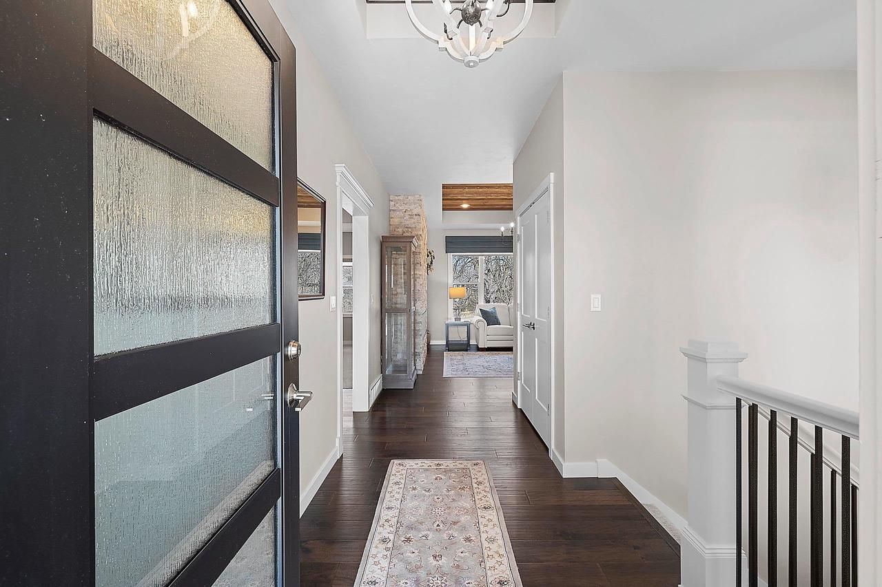 Beautifully designed home just steps away from a scenic walking trail. Step into an inviting LR w/ lg daylight windows, floor-to-ceiling stone FP & elegant tray ceiling w/ wood accents. Kitchen boasts quartz countertops, tile backsplash & top-of-the-line Bosch appliances. Retreat to a spacious primary BR w/ lg daylight windows, tray ceiling & relaxing bath complete w/dual vanities, quartz counters & tile WI shower. LL of this home offers a large rec room, 4th BR & stylish bath ideal for guests or gatherings. Step outside to a professionally landscaped yard complete w/sprinkler system. Entertain or unwind on the expansive composite deck w/ steps leading down to a charming paver patio. This remarkable home further boasts a finished garage w/ heater & convenient bsmnt access. Must see!